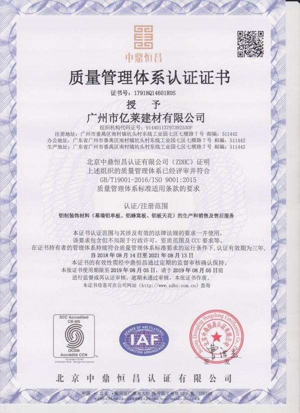 廣州市億萊建材有限公司成立于2007年1月是一家專業設計、生產、銷售全系列鋁質天花、集成吊頂、藝術天花板、非標造型金屬天花、室內外鋁單板及鋁蜂巢板幕墻、金屬裝飾工程配套材料的專業企業;位于南中國經濟強區珠江三角洲的廣州市番禺區(也是一個技術及資源集中的專業金屬裝飾材料生產基地);億萊公司屬下品牌:“YILAI億萊”金屬天花&幕墻 及 家居整體吊頂;公司具有年產鋁質天花300萬平方米,非標金屬天花及鋁質幕墻60萬平方米的生產能力。